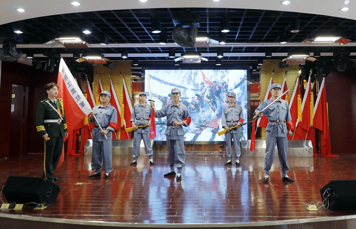 “美哉!我少年中國,與天不老!壯哉!我中國少年,與國無疆……”誦讀比賽在水電暖隊(duì)團(tuán)支部帶來的《少年中國說》中拉開了序幕,接著,《一個(gè)蘋果》《心中的旗幟》等10個(gè)節(jié)目輪番登場,誦讀者以舞蹈、歌曲、詩朗誦、情景演繹等多種形式亮相,聲情并茂地將一個(gè)個(gè)紅色經(jīng)典故事娓娓道來,讓現(xiàn)場觀眾感同身受、心潮澎湃,不時(shí)掌聲雷動。